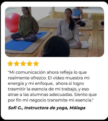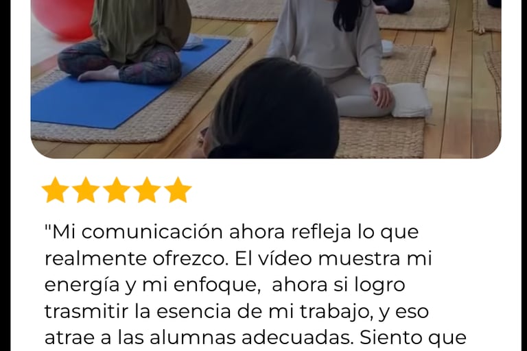"Mi comunicación ahora refleja lo que realmente ofrezco. El vídeo muestra mi energía y mi enfoque, ahora si logro trasmitir la esencia de mi trabajo, y eso atrae a las alumnas adecuadas. Siento que por fin mi negocio transmite mi esencia."