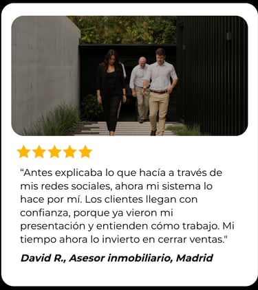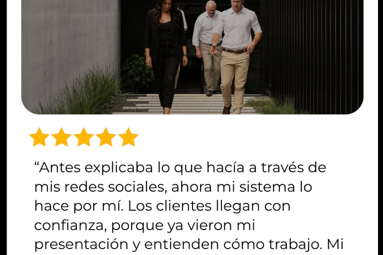 “Antes explicaba lo que hacía a través de mis redes sociales, ahora mi sistema lo hace por mí. Los clientes llegan con confianza, porque ya vieron mi presentación y entienden cómo trabajo. Mi tiempo ahora lo invierto en cerrar ventas."